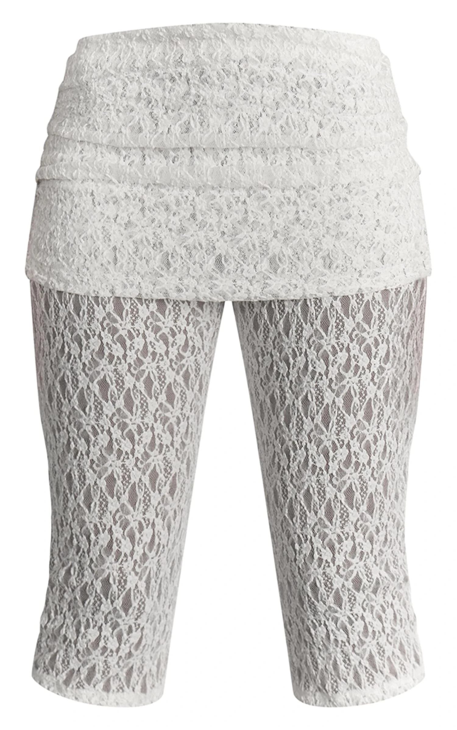 Keep it chic with the white lace fold over capri’s. Made from a white lace material, they feature a fold over waistband, cropped length, and a flattering fit. Style with a white bardot top, kitten heels and a clutch bag for an effortlessly polished finish.