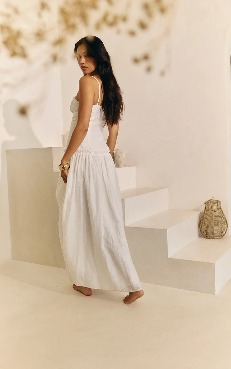 Bring all the feminine feels with this white ruched bust drop waist maxi dress. Designed in a white fabric with a ruched bust and a flattering drop waist style. Style this dress with your favorite flat sandals, understated gold jewelry and a shoulder bag for a look we know you’ll love.