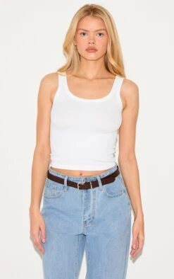 An elevated essential for the modern wardrobe, this white snatched rib scoop Vest is your foundation for considered styling. Crafted from a quality ribbed knit that subtly contours the body, the scoop neckline offers a clean, contemporary silhouette. Its minimalist design allows for versatile outfitting; try styling yours with wide-leg tailored pants for a refined daytime edit.