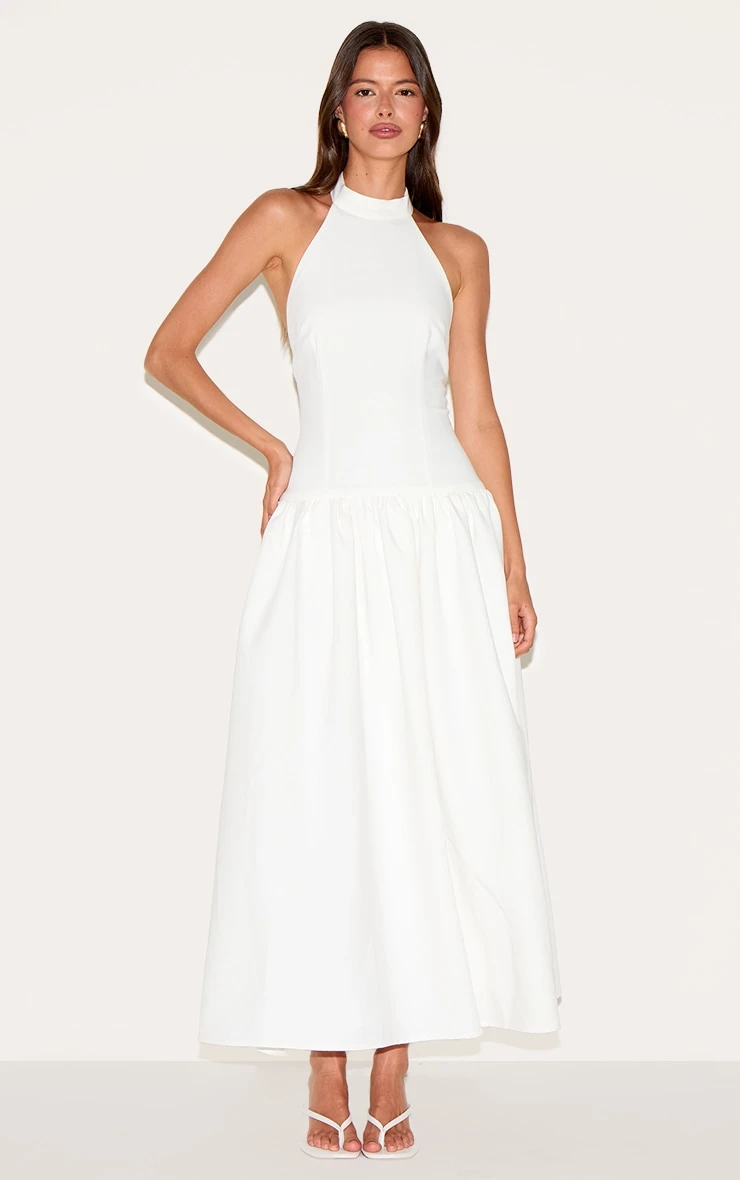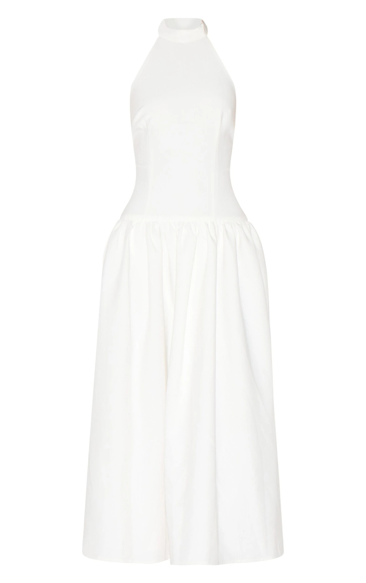 Turn heads in this white tailored high neck midaxi dress. Built from tailored white fabric, it offers a clean-cut, minimal look with refined neckline detailing. Team this midaxi dress with a pair of heels and your go-to accessories for a look like no other.