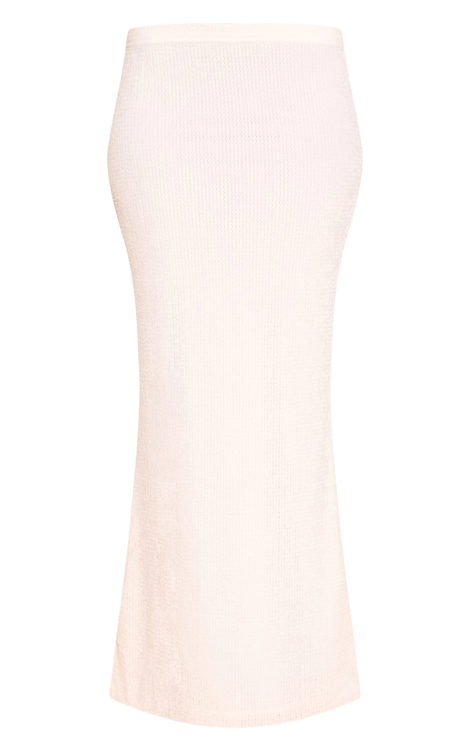 Own the room with a clean, confident line. The white textured lined maxi skirt delivers an elongated silhouette, designed to sit high on the waist and flow seamlessly to the floor, its uncluttered cut ensuring a refined, knowing presence. The subtle textured finish adds dimension to the crisp white hue, while its maxi length creates an undeniably sleek profile. Pair this essential skirt with a sharp tailored vest or a sleek bandeau top for a cohesive, powerful ensemble, then finish with pointed heeled mules for an assured after-dark statement. It’s the definitive piece for those who build their wardrobe with effortless conviction.