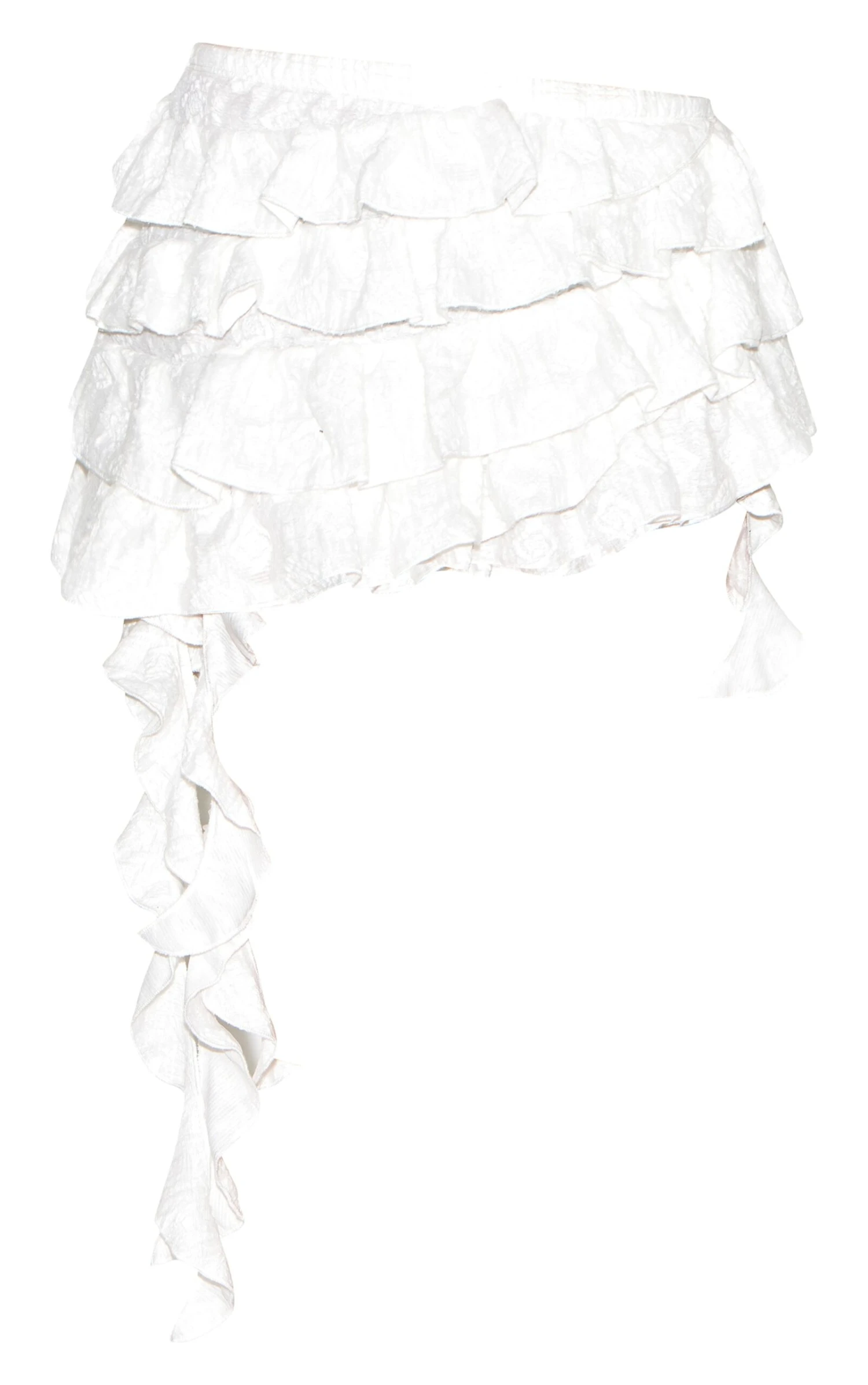 Keep your look elevated in this white textured tiered rara mini skirt. Made from white textured material with tiered rara design and a mini length for a feminine flair. Take your look to new heights and team this mini skirt with a tank to and a pair of slip-on sandals to finish the look.