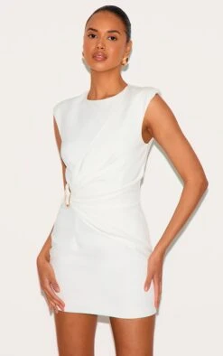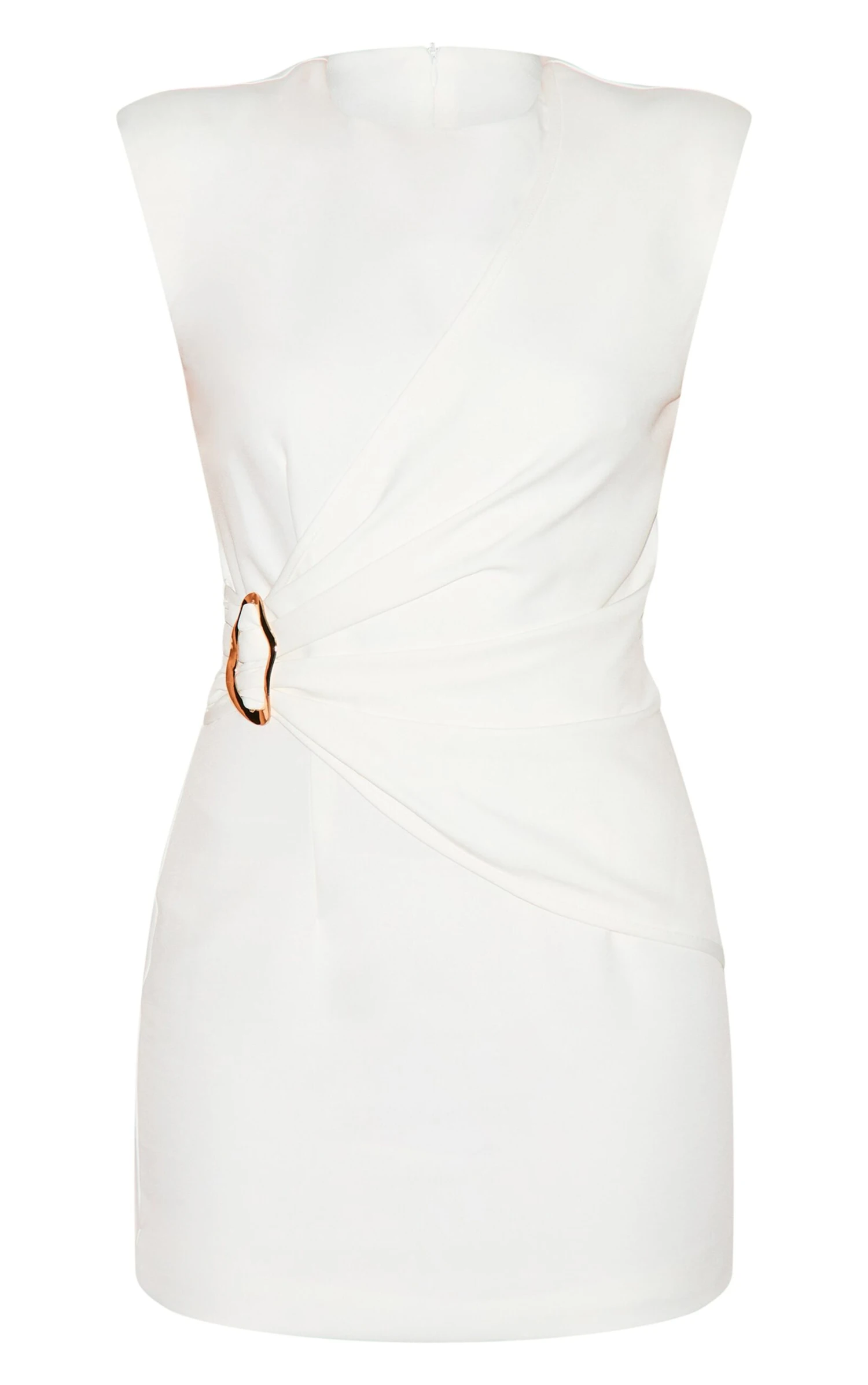 Enter the weekend in style with this white woven ruched trim detail mini dress. Made from a white woven material with a ruched design, trim detailing and a mini length. Style this mini dress with heels and simple gold accessories for a look that is sure to have all eyes on you.