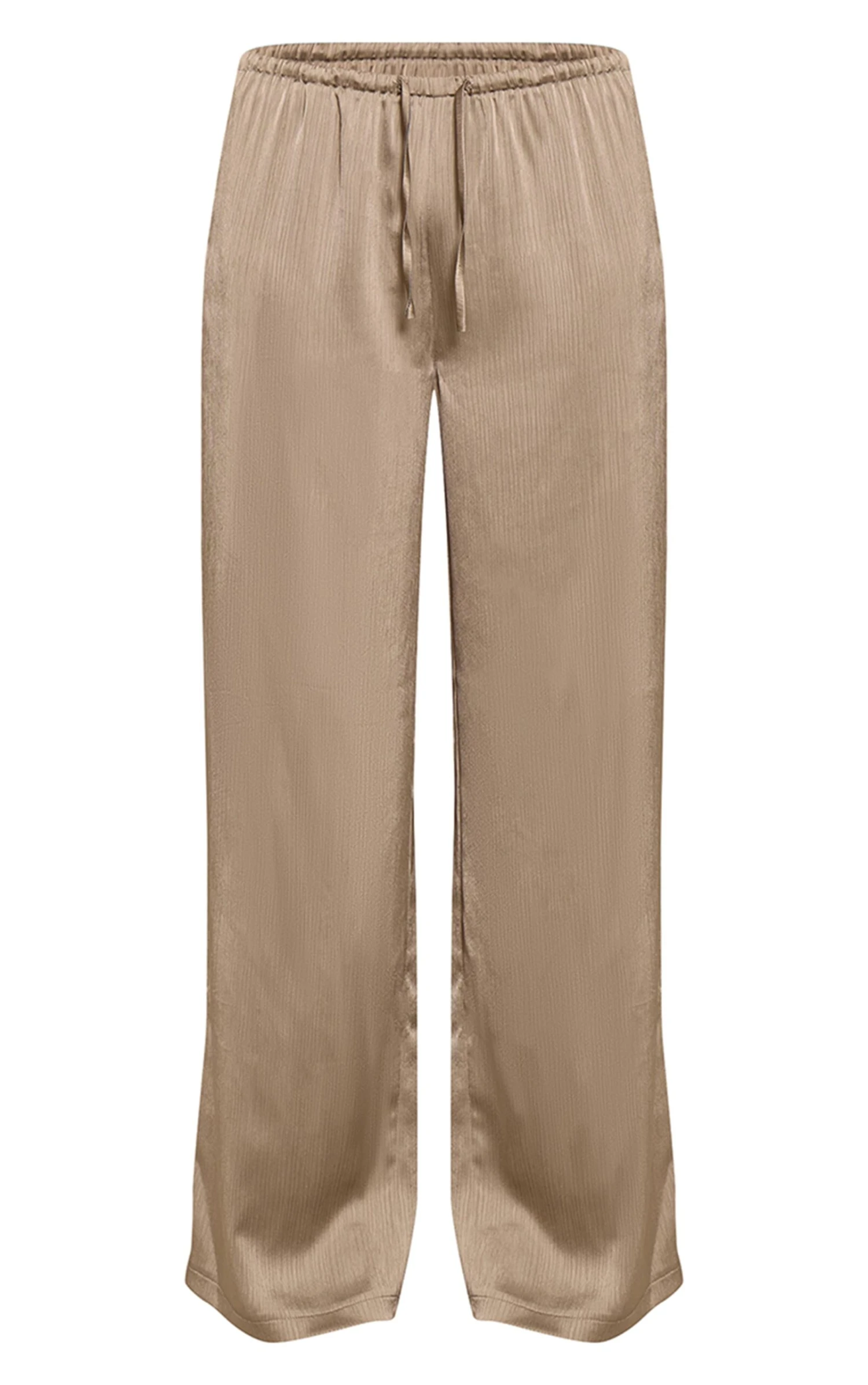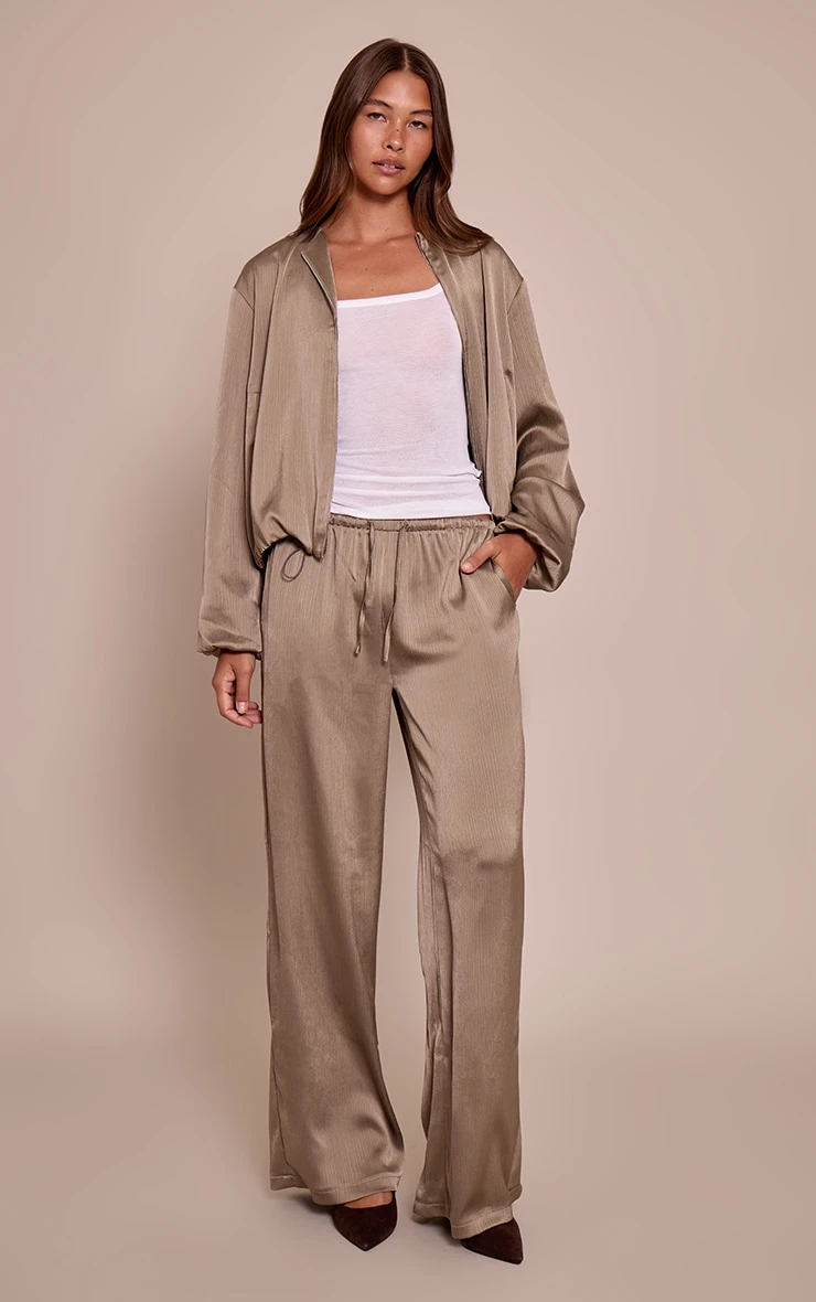 Exude effortless style in these sage khaki textured satin drawstring straight leg pants. Made from sage khaki satin with an adjustable drawstring waist and a straight leg fit, they combine comfort with sophistication. Add a basic tee, the matching jacket and pointed toe heels for coordinated perfection.