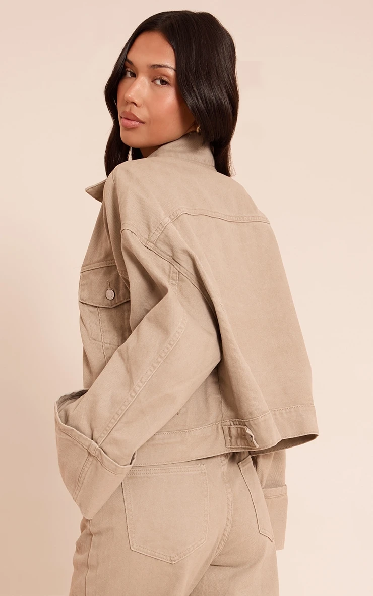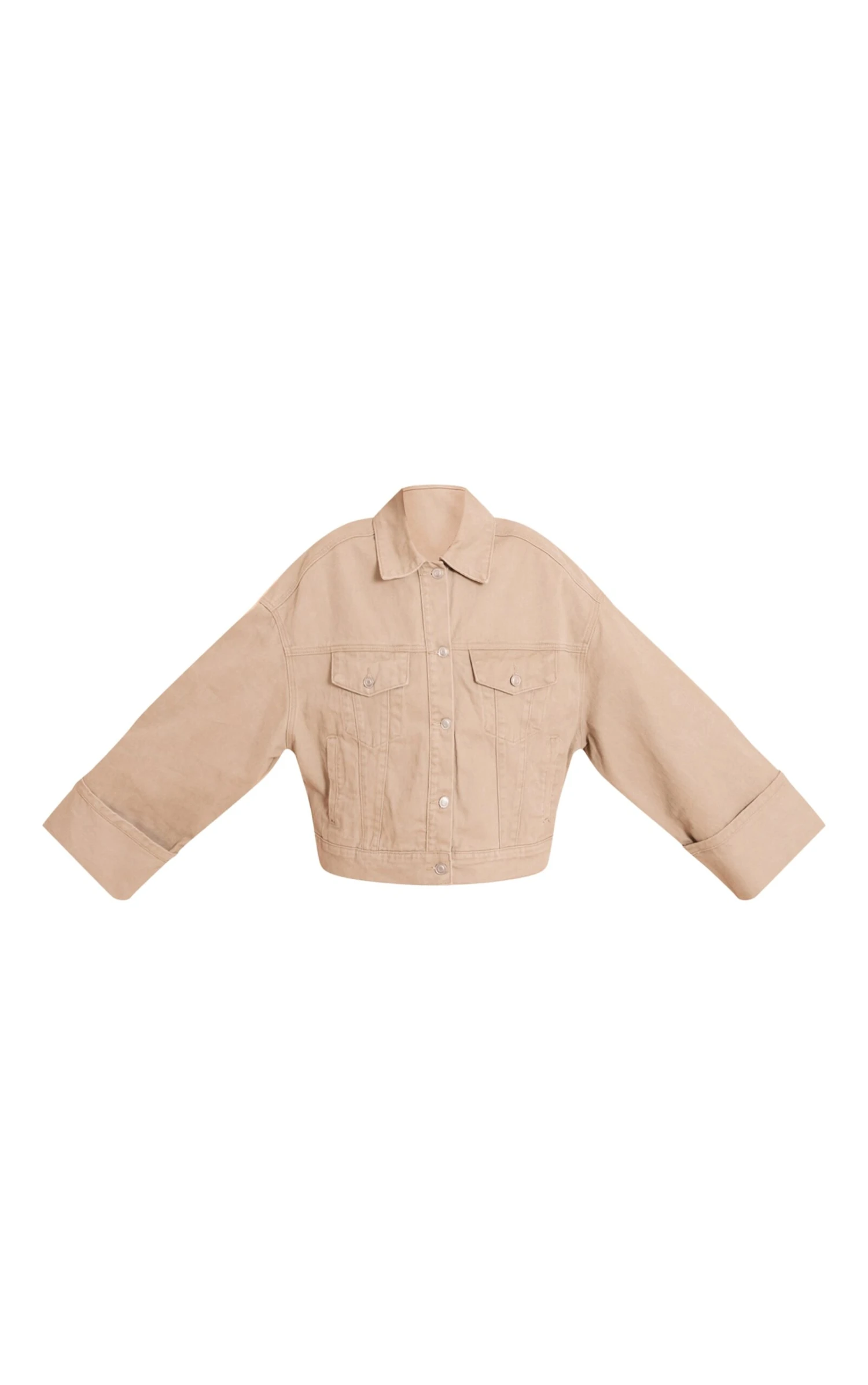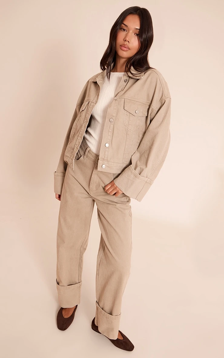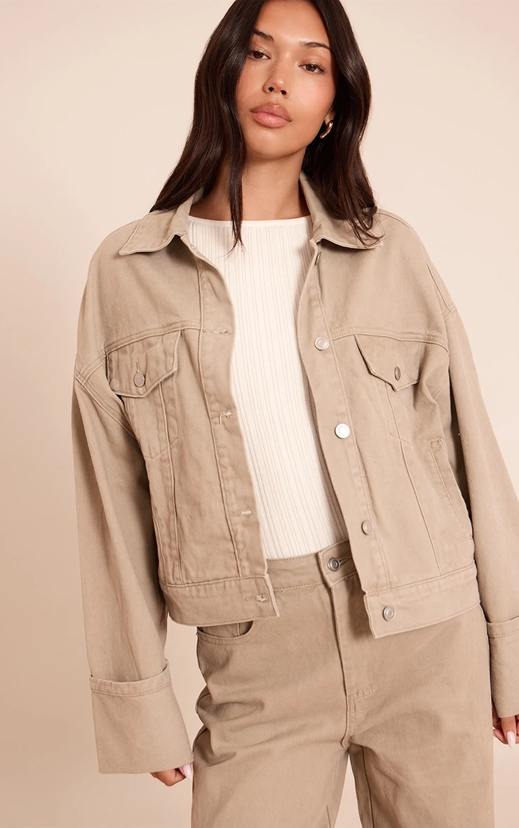Layer up with the stone turn up cuff jacket. Designed in durable denim, it features structured seams, turn up cuffs and a relaxed fit for versatile styling. Style with matching jeans and a basic tee for an effortless two piece set look.