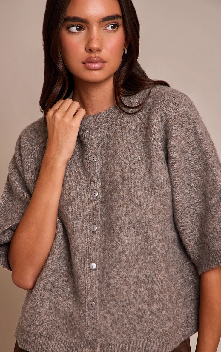 Layer up your look in this taupe soft knit short sleeve cardigan. Brought to you in taupe toned material, this cardigan has value fastenings and chic short sleeves. Add wide leg jeans and sneakers for a look we’re loving right now.