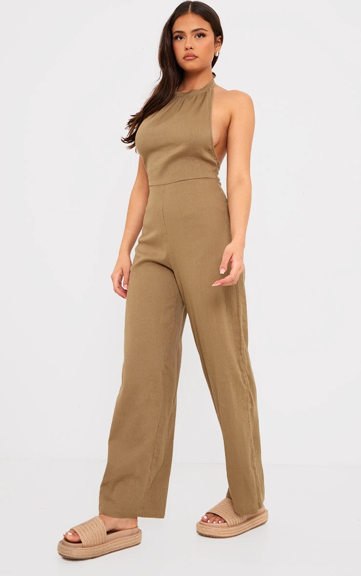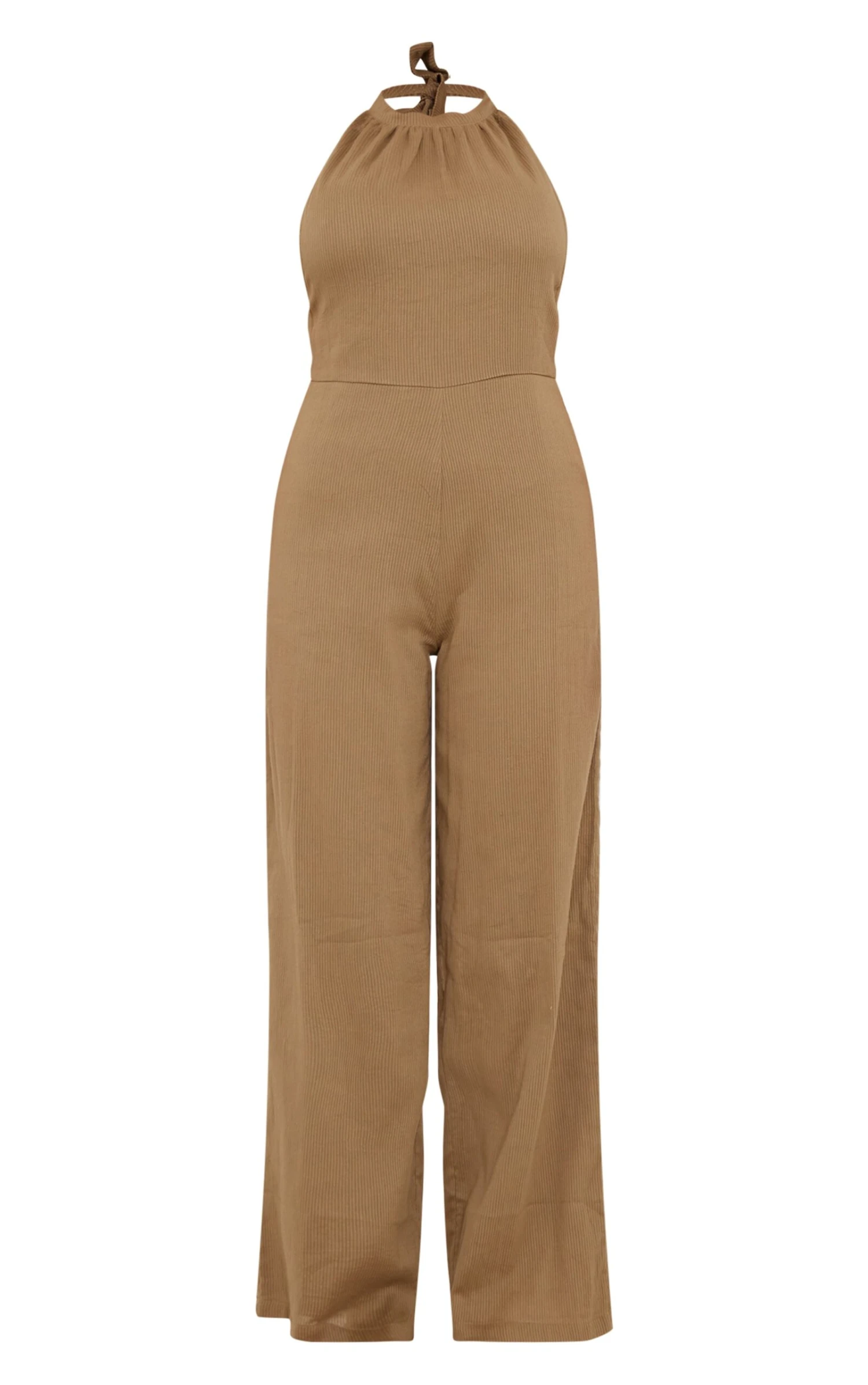 Add some seriously chic vibes into your new season wardrobe with this taupe textured halterneck low back jumpsuit. It is made using a taupe textured material with a halterneck design and a low back style, you’re sure to have heads turning in this jumpsuit. Pair with sandals and gold hoop earrings for a look that will earn you all the compliments.