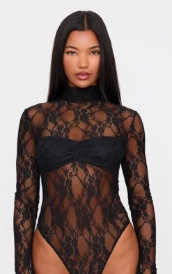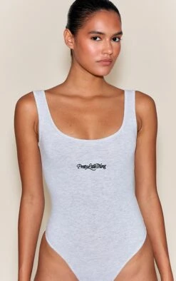 Prettylittlething Black Cotton Scoop Neck Long Sleeve Bodysuit