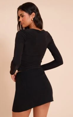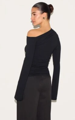 Prettylittlething Black Soft Touch Asymmetric Detail Long Sleeve Top