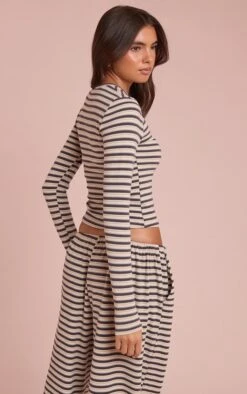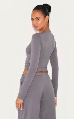 Prettylittlething Charcoal Soft Knit Straight Neck Long Sleeve Top