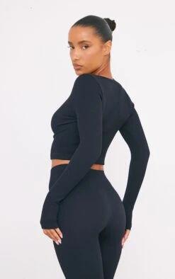 Prettylittlething Black Soft Touch Cut Out Detail Long Sleeve Top