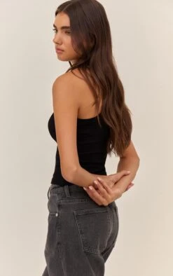Prettylittlething Black Soft Rib Scoop Neck Vest Top
