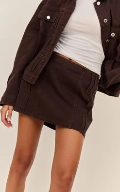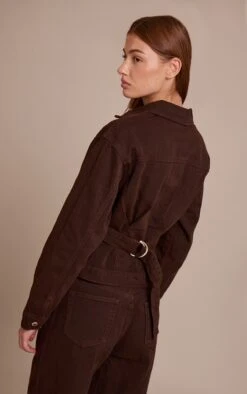 Prettylittlething Dark Chocolate Pleated Cinch Back Denim Jacket