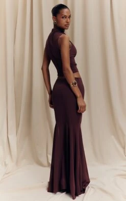 Prettylittlething Deep Chocolate Premium Linen Tailored Cocoon Sleeve Cinched Blazer