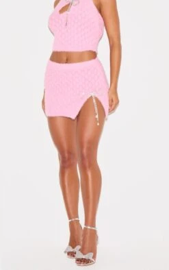 Prettylittlething Pink Textured Eyelash Knit Bow Trim Mini Skirt