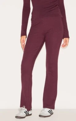Prettylittlething Plum Ribbed Elasticated Skinny Flare Pants