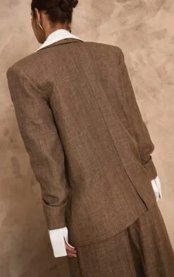 Prettylittlething PLT Label Chocolate Brown Textured Double Breasted Blazer