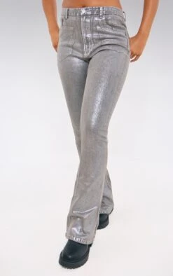 Prettylittlething Silver Metallic Faux Leather Zip Up Biker Detail Corset