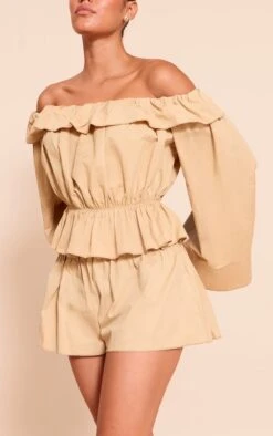 Prettylittlething Stone Structured Snatched Ribbed Round Neck Long Sleeve Crop Top