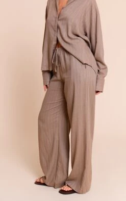 Prettylittlething Taupe Tailored Tie Detail Woven Wide Leg Pants